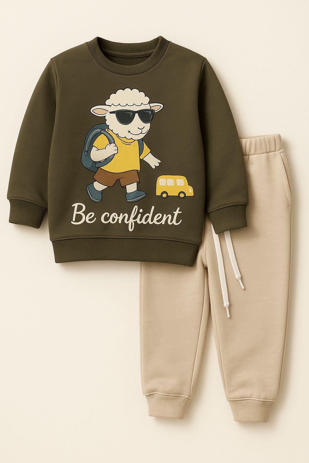 Çocukların rahatlığına ve enerjisine eşlik eden “Be Confident” eşofman takımı ile stil ve konfor bir arada.