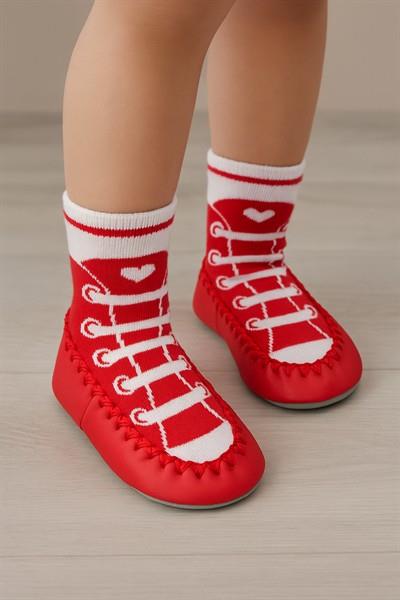 Çocuk Makosen Soket Çorap Patik Panduf – Kaydırmaz Ev & Anaokulu Ayakkabısı Kırmızı (22501G7002)