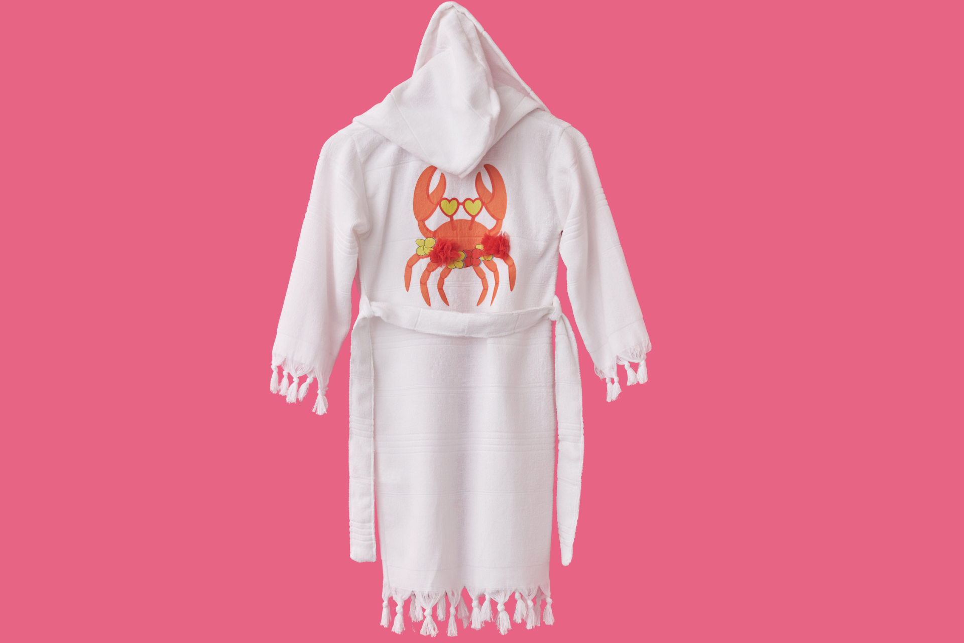 Çocuk peştemal bornoz çeşitleri, çocukların ilgisini çeken tasarımlarıyla geniş bir ürün yelpazesi sunar. Yengeç baskılı, lacivert renkli köpek balığı baskılı ve renkli çiçek desenli modeller; markanın çocuklara özel olarak geliştirdiği öne çıkan ürün seçenekleri arasında bulunur.