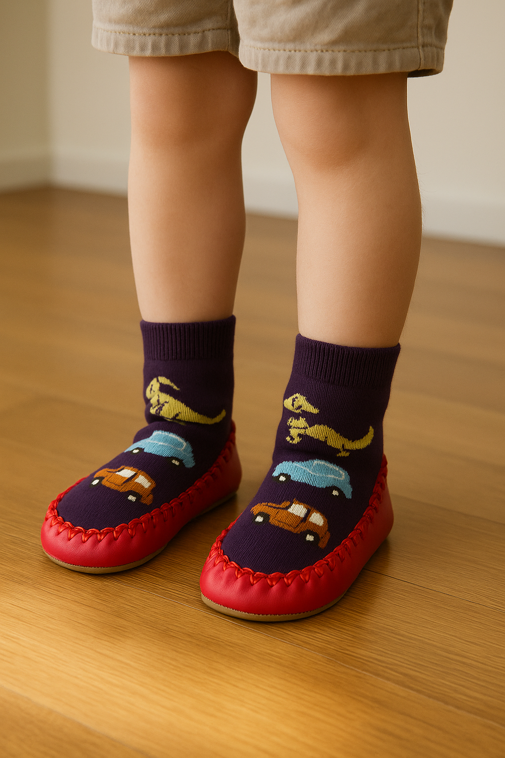 Minik adımlar bazen evin salonunda, bazen de anaokulunun renkli koridorlarında atılır. 🌟 İşte bu makosen soket çorap patik-panduf, çocukların o enerjik dünyasında hem güven hem konfor sunmak için tasarlandı.