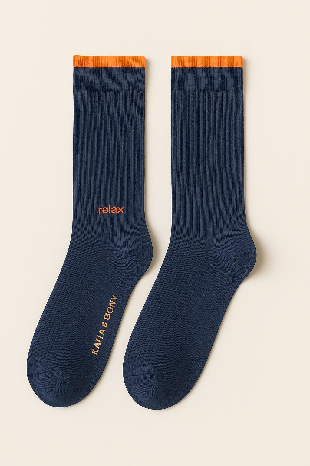 Günün her anında konforu hisset! Bu lacivert erkek çorap, sade tasarımı ve "RELAX" detayıyla hem modern hem de rahat bir görünüm sunar. Üst kısmındaki turuncu bant, çoraba enerjik bir dokunuş katarak tarzınızı tamamlar.