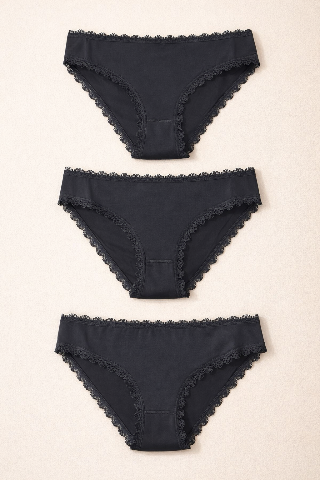 Kadın 3'lü Dantelli Basic Slip Külot Siyah