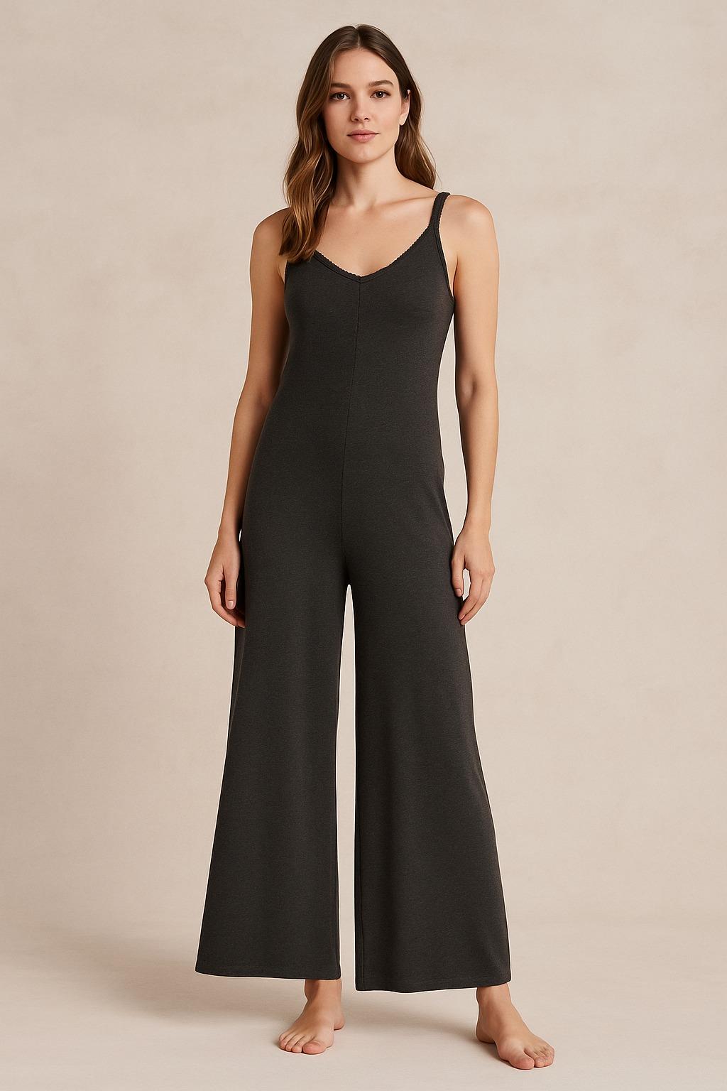 Yalın ama etkileyici bir stil arayanlar için tasarlanan bu tulum, ister tek başına ister sabahlık ya da hırka ile kombinlenerek ev giyiminizde anahtar parça olmaya aday.