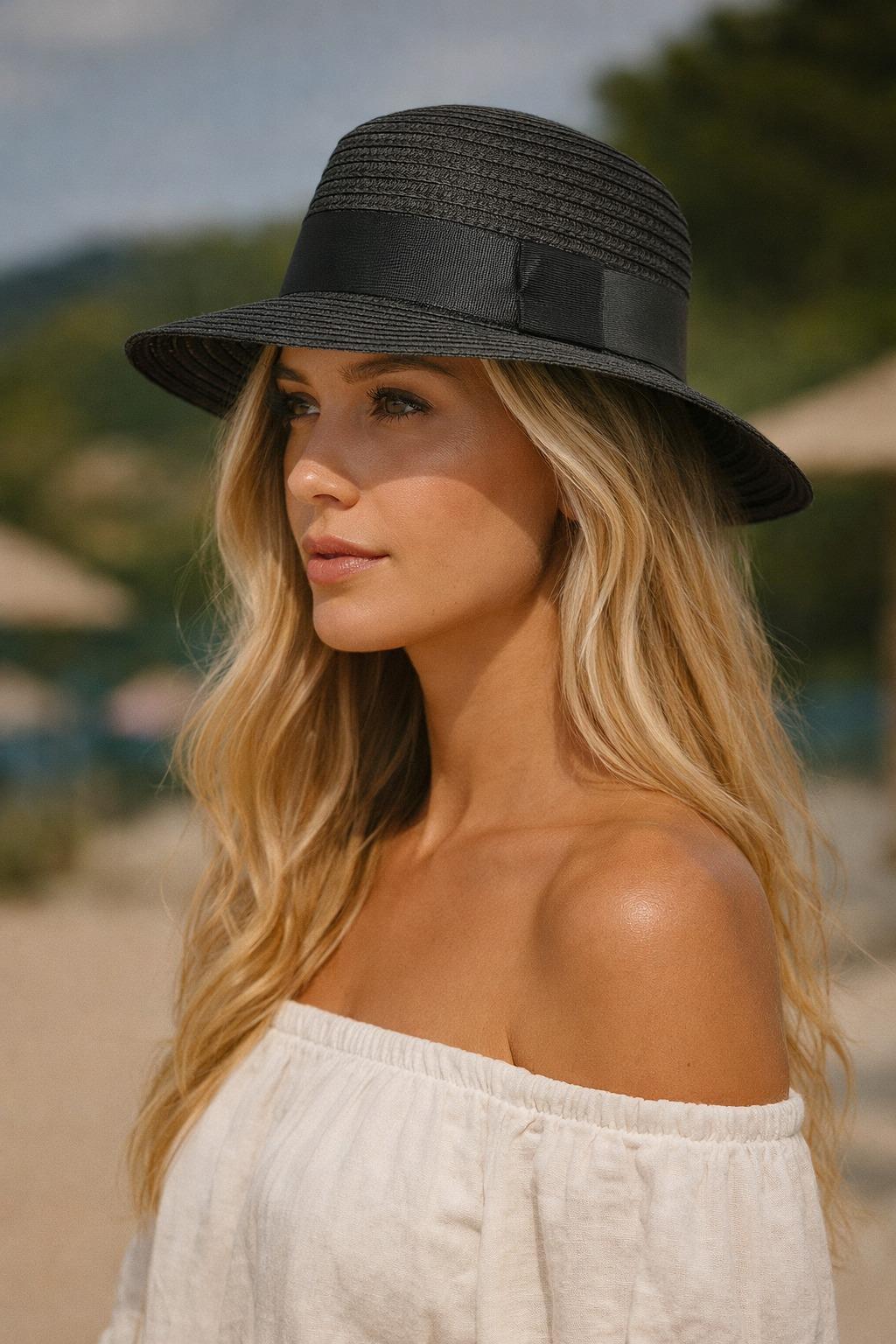 Kadın Hasır Şapka Siyah Kadın Hasır Şapka Bej