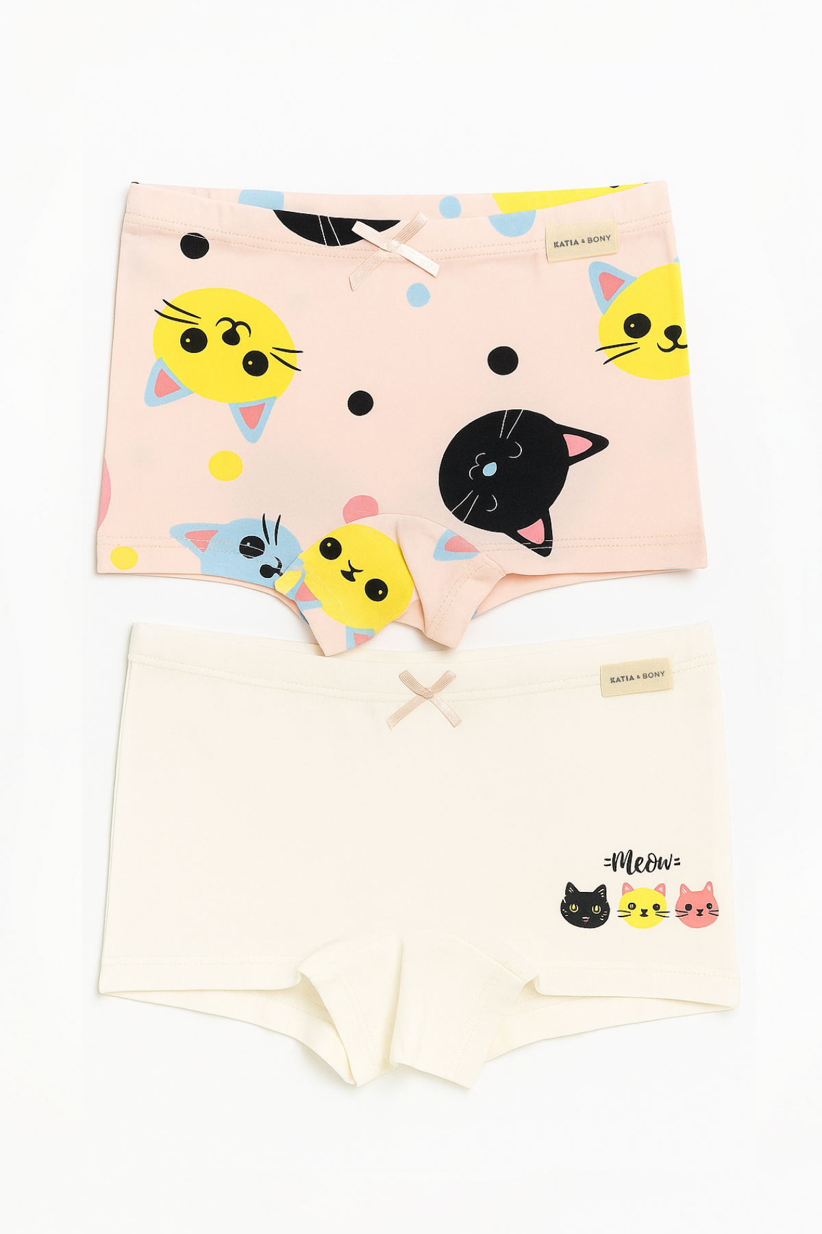1 adet sevimli kedi figürleri ve renkli puantiyelerle süslenmiş desenli boxer