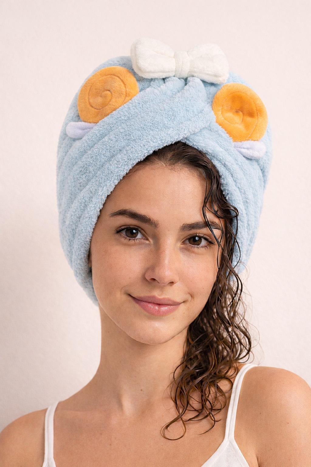Kulak Aksesuarlı Havlu Bone Mavi (22505G2109)